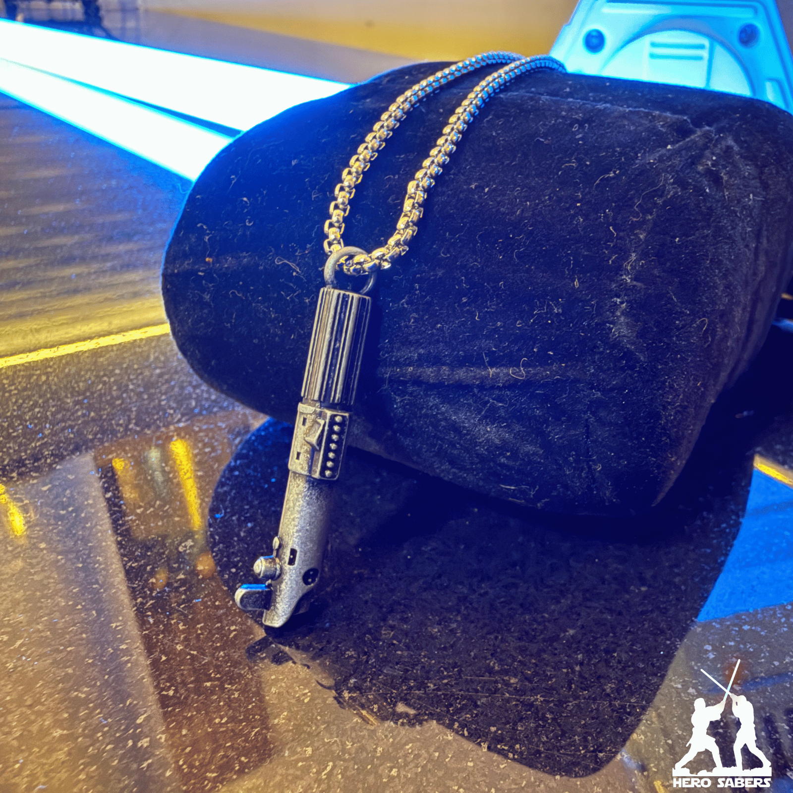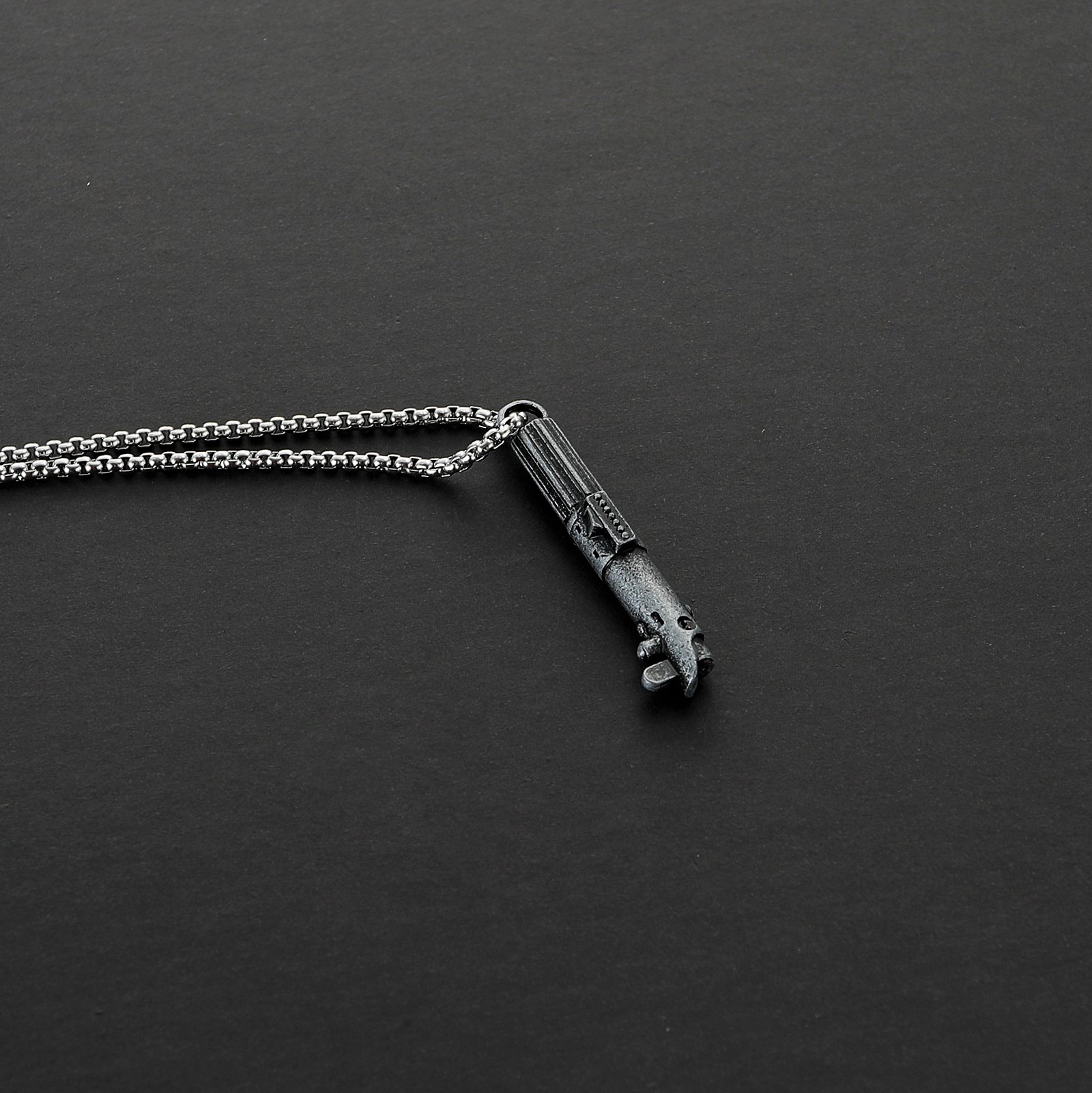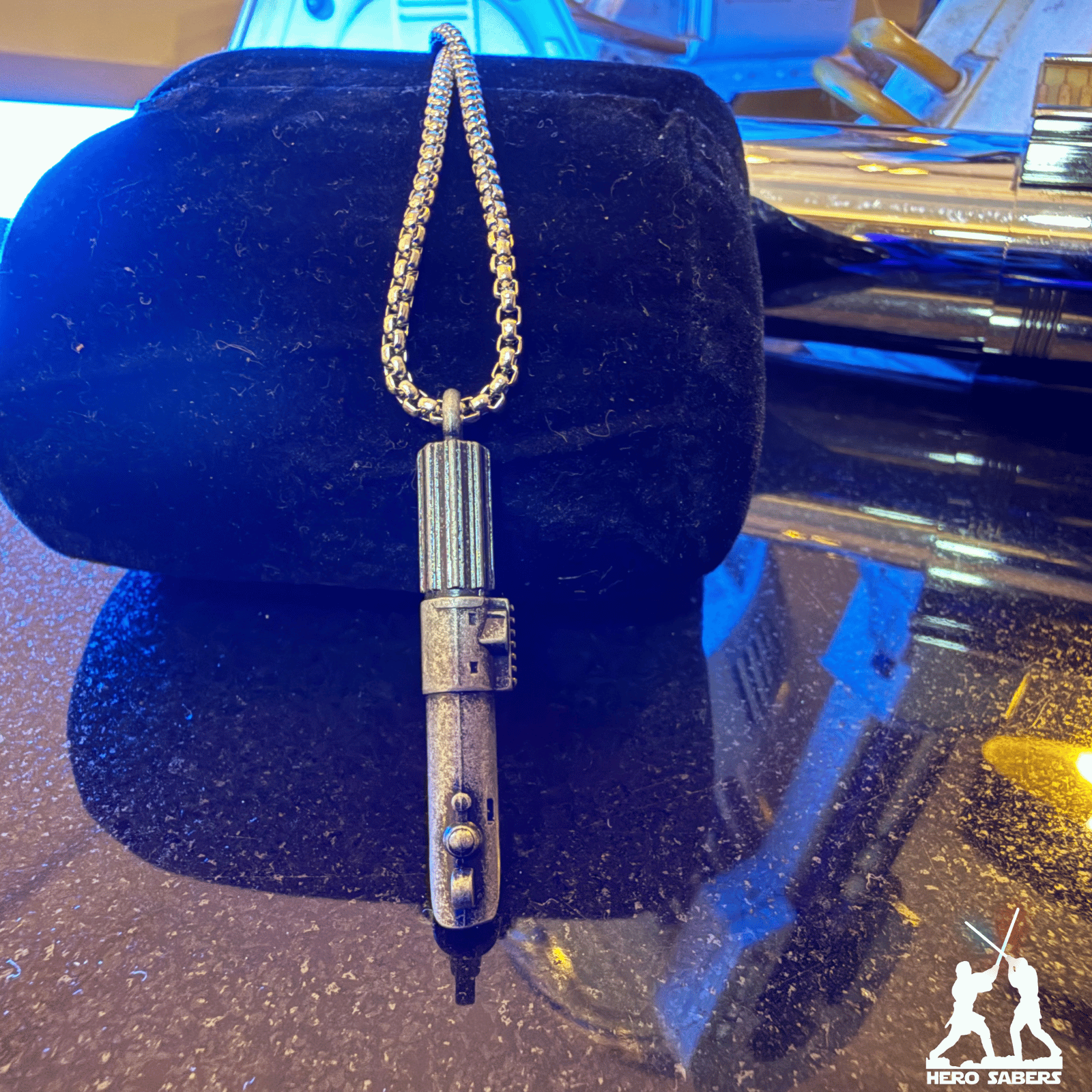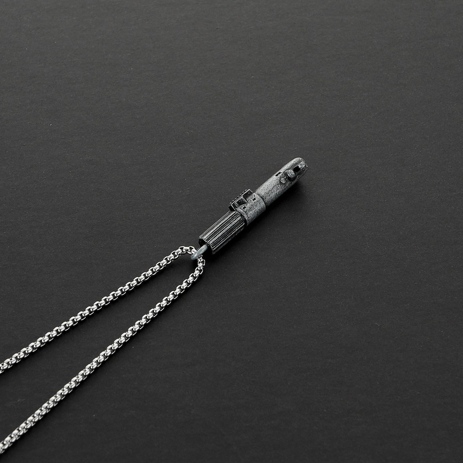 El legado de los Skywalker en tus manos. ⚔️ Este Collar de Sable de Luz es una réplica premium de la empuñadura de Anakin Skywalker, fabricada en metal macizo con cadena de acero inoxidable.