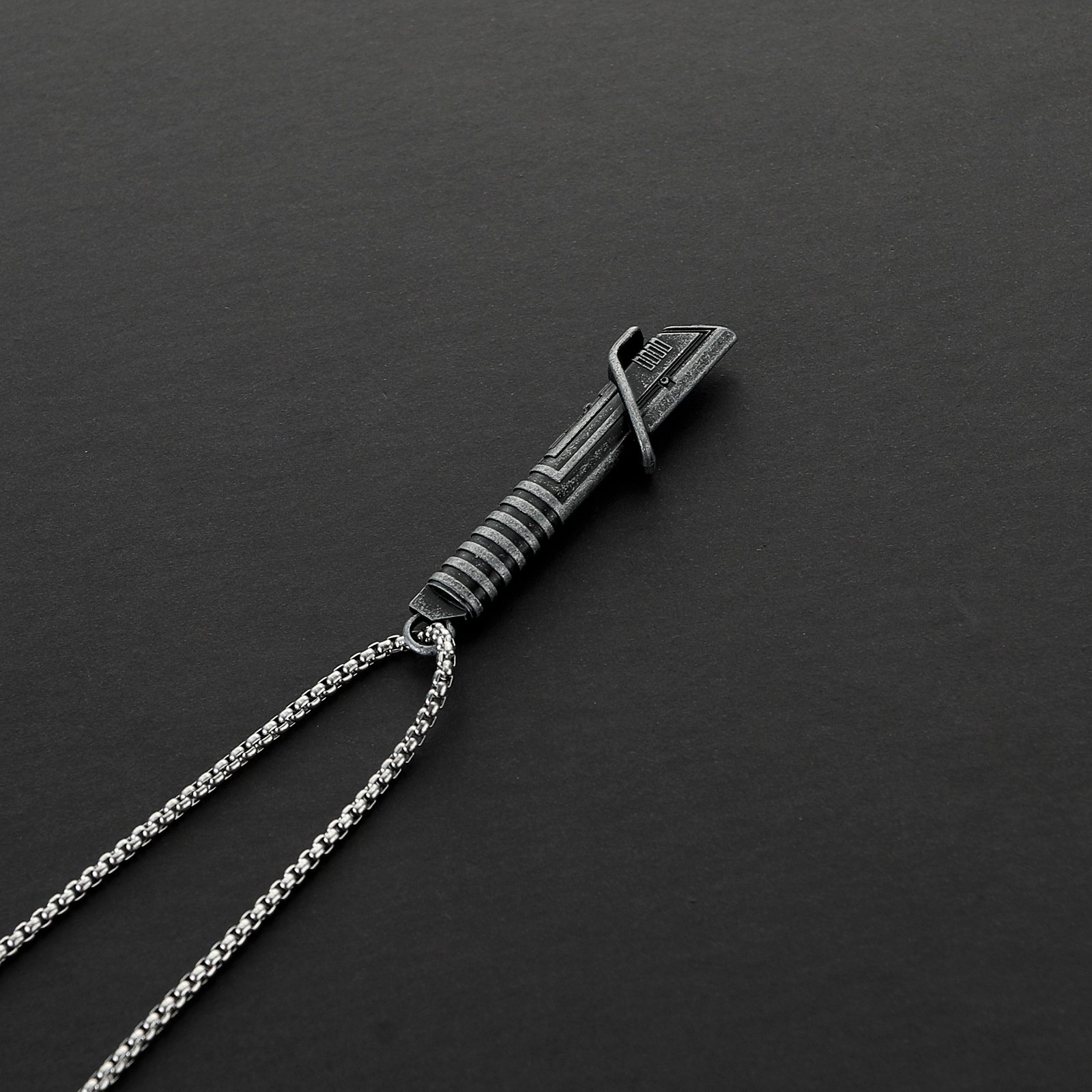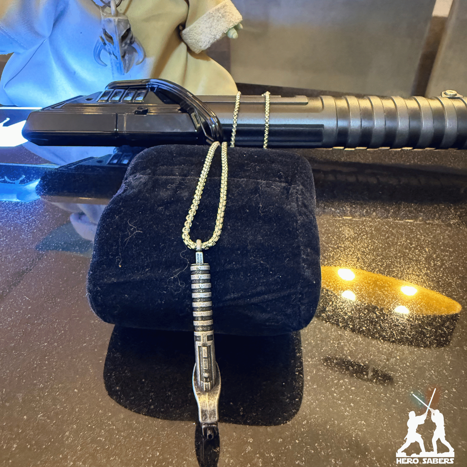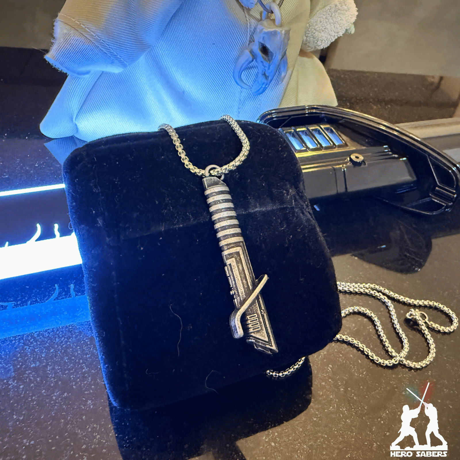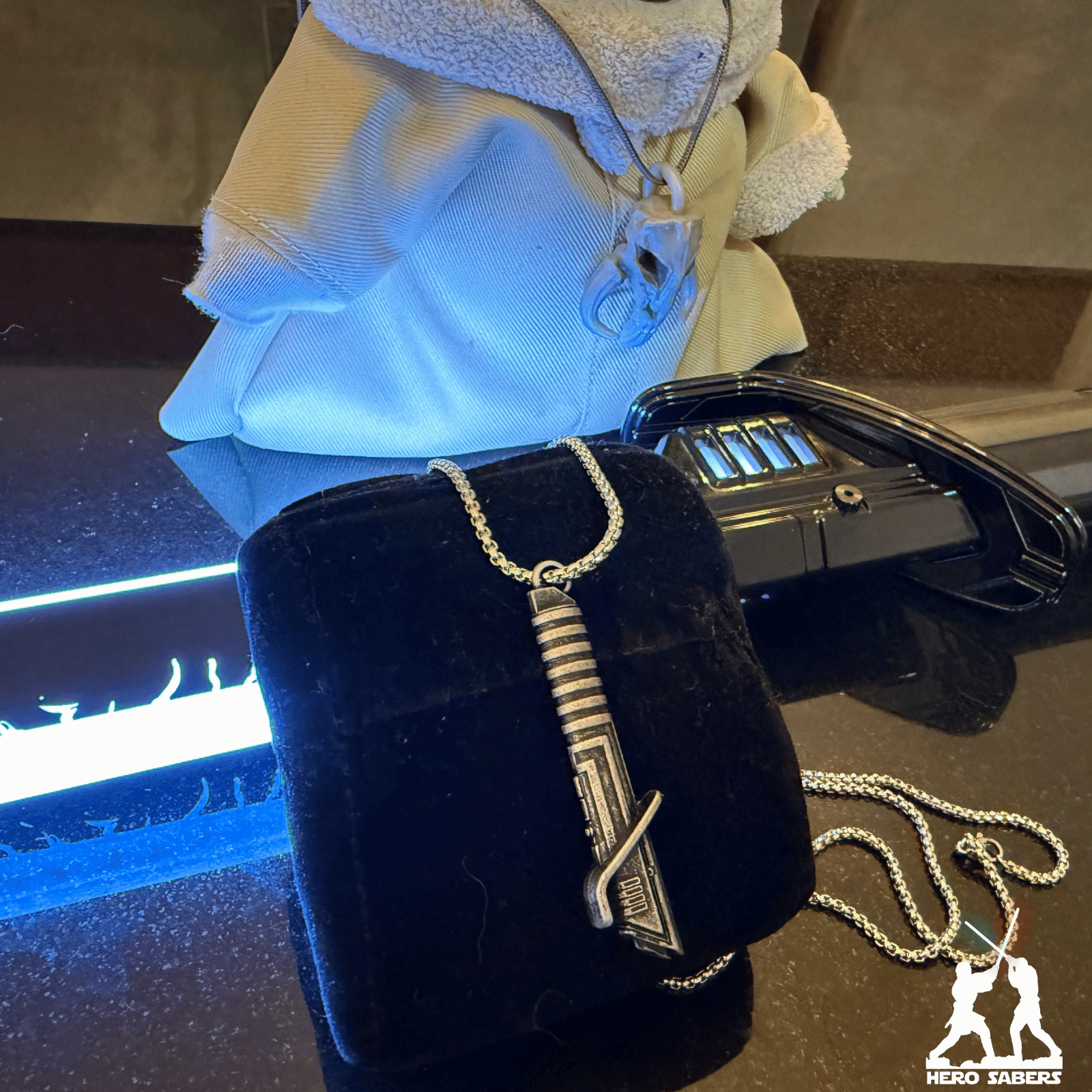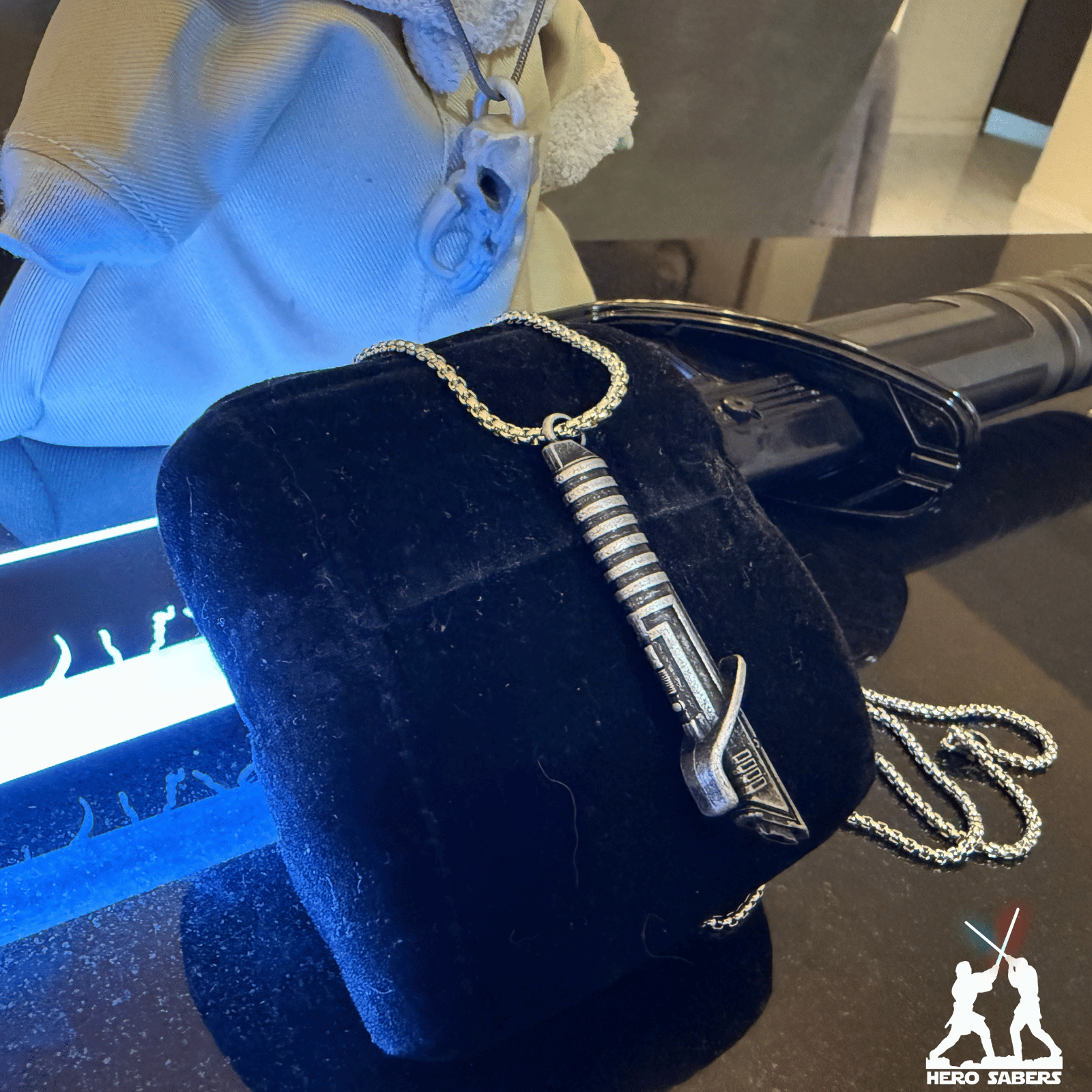 Lleva contigo el símbolo de poder más importante de la galaxia. 🌌 Este Collar de Sable de Luz es una réplica exacta del legendario Darksaber, diseñada especialmente para el auténtico Star Wars Fan.