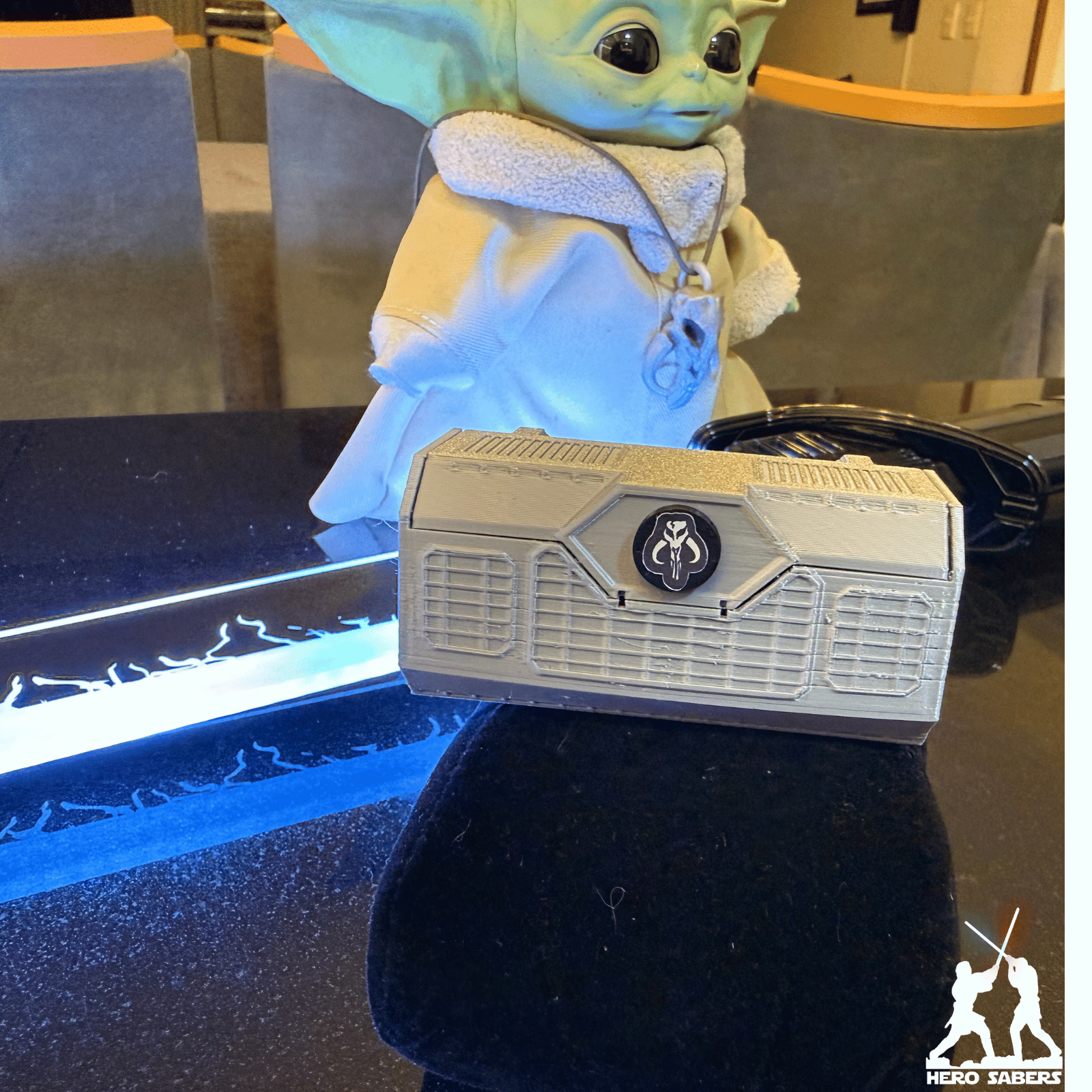 Empaque de Colección: Se entrega en un estuche exclusivo con el emblema mandaloriano, inspirado en los contenedores de Galaxy’s Edge.