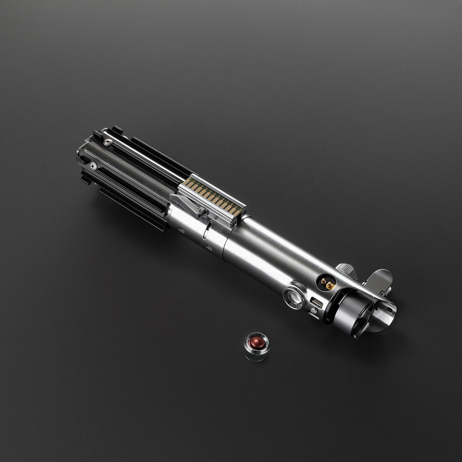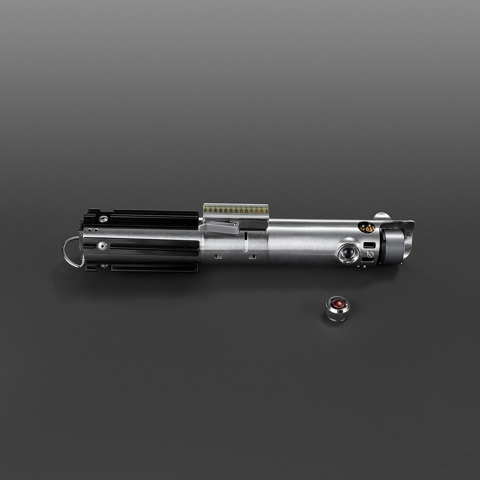 Este icónico sable de luz representa el legado de los Jedi, siendo el mismo que perteneció a Anakin Skywalker antes de pasar a manos de Luke. Su diseño clásico, con empuñadura metálica plateada y detalles en negro, captura la esencia del arma que encendió el destino de una nueva generación.